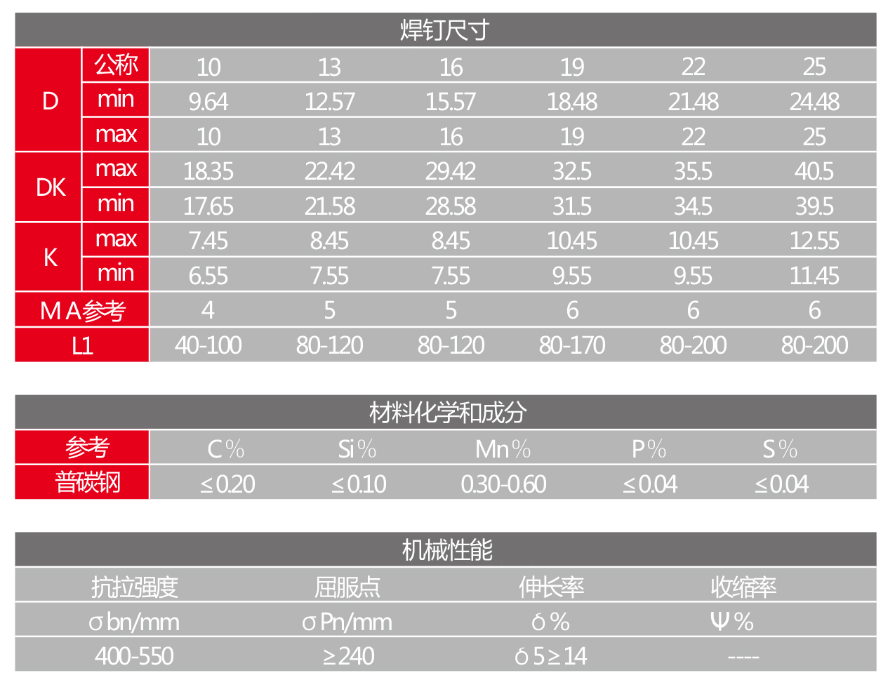 規格:ISO 13918;ANSI/AWSD 4.1;GB/T 10433-2002