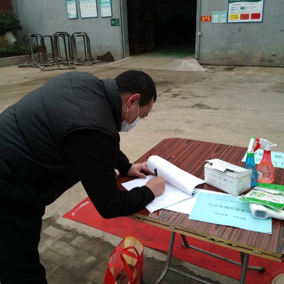 在入口處的工作人員,佩戴口罩、手套,入廠人員班前班后進行體溫測量。